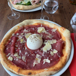 For those craving something a little different, the Pizza roquette et Parme with buffalo mozzarella, Parma ham, and fresh rocket is a unique and delicious option.